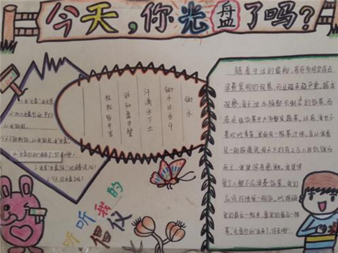 走进学校,如果仔细去注意的话,不难发现学校的泔水桶里每天都堆得满满的,有剩菜、剩饭还有整个馒头,每一个来到它跟前的人,都会用一个极潇洒的姿势,赋予那白白的馒头一道优美的弧线。虽然我们生在农村,长在农村,粮食是自家带来的,不需要花钱去买,但是我们也不必这么浪费它,这也是我们的父母头顶烈日,脚踩热土,花费心血种出来的。如果这一切让父母看到,他们又会怎么想,除了痛惜之外,还有什么呢?。
